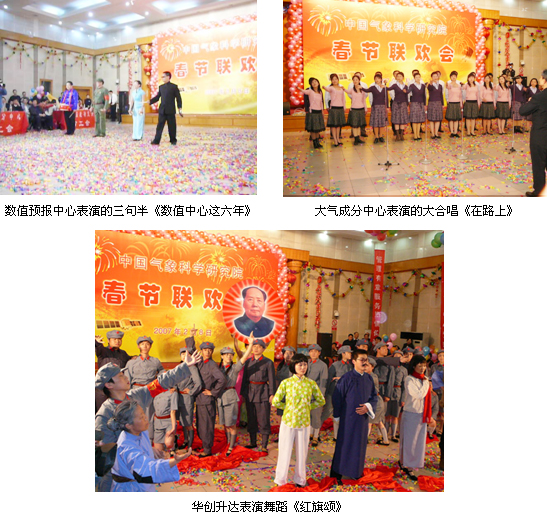 张人禾院长在联欢会致辞中指出,气科院在过去一年中在科研与业务工作方面取得了长足的进步,特别是由我院牵头的三条业务轨道建设和国家重点实验室的建设都取得了很大的成绩。新的一年,气科院将要迎接新的压力与挑战,他希望全院职工在2007年要继续开拓进取,努力创新,团结一致,取得更大的进步。张人禾院长对局领导、相关职能司和局直属单位在过去一年中给予的支持与帮助表示感谢,最后,他代表院领导班子向全院职工致以新春的祝福。