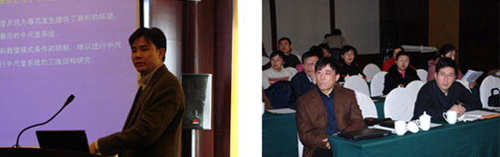 在研讨会中,项目负责人王东海研究员作了“我国东北强降水天气系统的动力过程和预测方法的研究”报告,他从项目概况、项目思路、研究背景、研究现状、天气学特征、拟解决的关键科学问题、研究内容、特色创新和预期研究结果等方面对基金重点项目作了详细的介绍。该项目将对典型东北暴雨天气系统进行多尺度的观测分析和模拟研究,突出体现在东北典型暴雨多尺度的三维空间物理结构的揭示和物理概念模型的构建;遥感遥测多种观测资料、中尺度模式系统及其同化方法引入东北暴雨中尺度系统发生发展机理研究。项目组成员中科院大气物理研究所王斌、辽宁省气象局张立祥、吉林省气象局孙力等气象专家分别针对该项目的研究做了“变分资料同化的应用及其未来展望”、“东北地区气象综合观测系统建设情况”和“对东北地区暴雨的粗浅认识”的学术报告。中国气象科学研究院灾害天气国家重点实验室