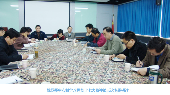 2007年最后一个工作日,气科院党委学习中心组组织了学习贯彻十七大精神第三次专题研讨会。学习研讨内容:结合十七大精神和党中央、局党组最新的工作部署,创新工作思路,落实发展任务,科学地谋划2008年工作。