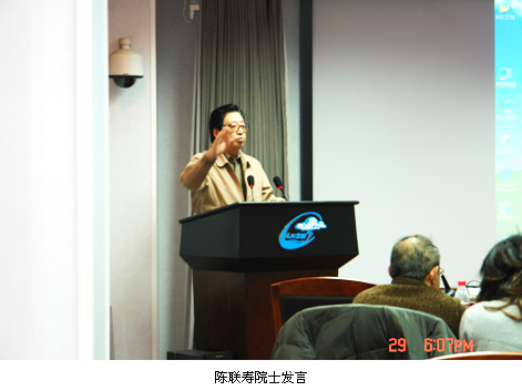 气科院陈联寿院士在发言中对近期雨雪天气过程成因进行了精辟分析并对研讨会的组织形式提出了很好的建议。气科院院长张人禾在总结讲话中充分肯定了此次讨论会的意义和必要性,提出气象科研人员应进一步增强对灾害性天气的敏感性的认识,加强对灾害性天气事件的关注与研究,对未来趋势提出意见,特别是要对近年来持续灾害性天气,如2007年淮河流域持续性强降雨、华南前汛期暴雨频繁发生等进行深入分析与研究,加强研究成果的应用,为预报员提供新的视角与思路,为奥运会顺利举行提供科技保障,为国家防灾减灾多做贡献。