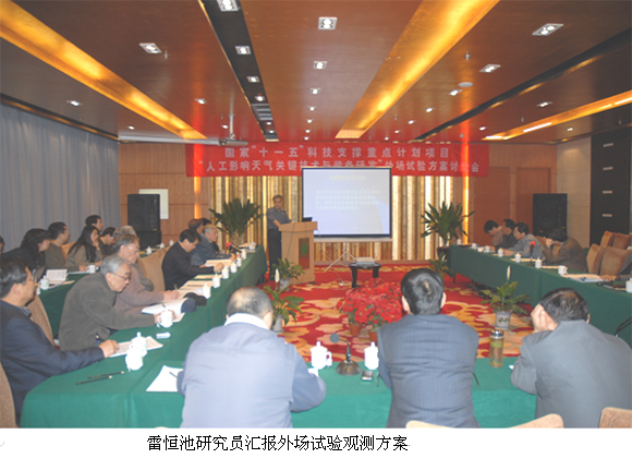 近日,由中国气象科学研究院主持的“十一五”国家科技支撑计划重点项目《人工影响天气关键技术与装备研发》2008年外场观测试验方案讨论会在北京召开。项目专家组成员、各课题负责人、项目管理部门有关领导及课题研究人员40余人参加了会议。