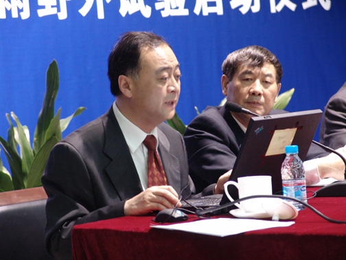项目首席科学家、中国气象科学研究院院长张人禾从十个方面向到会的新闻媒体,介绍了我国南方暴雨野外科学试验(SCHeREX)2008/2009实施方案及其准备工作进度情况。强调了气科院灾害天气国家重点实验室与国家973项目在中尺度暴雨研究上要有创新性的突破,必须组建中尺度观测基地和实施针对中尺度暴雨的野外科学试验的意义;介绍了我国南方暴雨野外试验 (CHeREX)的特点;中尺度观测基地的观测平台、观测与预报互动平台以及指挥平台的最新技术建设等情况。