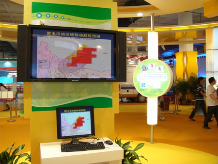 在本届科博会中,中国气象科学研究院向公众展示了我院自行研发的“雷电临近预警系统”(CAMS_LNWS)。该系统是奥运科技专项“奥运会雷电监测和预警系统关键技术研究”的重要成果。系统综合利用地面电场仪、地闪定位仪、SAFIR干涉仪、雷达、卫星和探空等观测资料以及雷暴云起电、放电模式进行雷电临近预警,实现了雷电发生概率、重点区域的雷电危险度等级预警,以及雷电活动区域及其移动趋势等临近预警产品。该系统目前已在全国范围内开展了业务推广应用,取得了较高的服务效果和社会经济效益,预警产品的准确率达到了国际先进水平。通过这次展会,中国气象科学研究院树立了良好的社会形象,扩大了影响。在科技和奥运相结合的主题下,充分向国家领导、各国外宾以及社会大众展示了我院为2008奥运会提供优质气象服务的能力和决心。