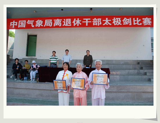 6月6日,中国气象局离退休干部太极剑比赛在局大操场举行。伴随着优美的音乐,气科院退休干部太极剑队动作整齐连贯、和顺协调,虚实分明,刚柔相济,加上轻灵沉着的太极神韵,不时迎来观众的阵阵掌声,受到裁判组的一致好评,荣获中国气象局退休干部太极剑比赛第一名,蝉联中国气象局退休干部太极剑比赛冠军。