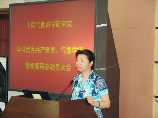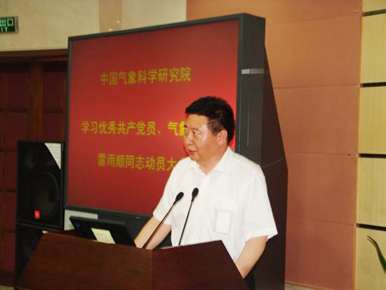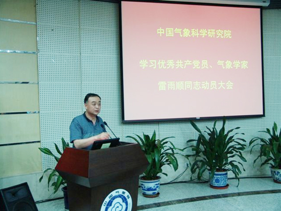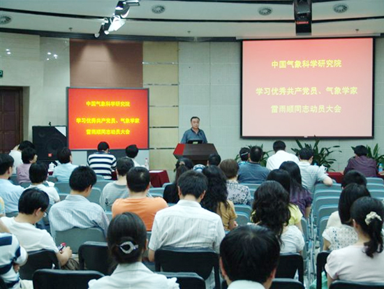 气科院院长、党委书记张人禾主持动员大会,并作了题为《坚定理想,爱岗敬业,为气象业务服务提供强有力的科技支撑》的动员报告。张院长指出:一要充分认识新形势下向雷雨顺同志学习的重要现实意义;二要把学习雷雨顺同志的活动和做好本职工作紧密结合,与加强党员理想信念教育结合起来,与加强科研人员职业道德教育结合起来,与进一步深化科技体制改革、推进科研面向业务需求结合起来,与加强创新文化建设结合起来,与纪念改革开放30周年、纪念建党
