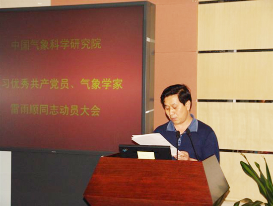 87周年结合起来,与加强党风廉政建设结合起来;三要认真组织好学习活动。并强调要学习雷雨顺同志坚定的理想信念、刻苦勤奋好学的学风、针对气象业务搞科研的求实精神和高尚的科研作风、道德品质。气科院党委专职副书记刘柏林在会上宣读了中国气象局党组《关于开展向优秀共产党员、气象学家雷雨顺同志学习的通知》(中气党发[2008]41号)。