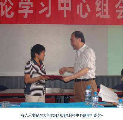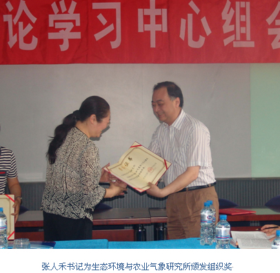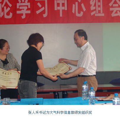 5月14日上午,在党委中心组“加强党性修养、树立和弘扬优良作风”主题思想大讨论第一次学习活动中,气科院纪委专职副书记王斐通报了组织参加气象部门“加强领导干部党性修养,树立和弘扬优良作风”知识竞赛活动的情况。院党委书记、院长张人禾为在气科院参加知识竞赛活动中获得组织奖的大气成分观测与服务中心、生态环境与农业气象研究所和大气科学信息部等3个单位颁奖。