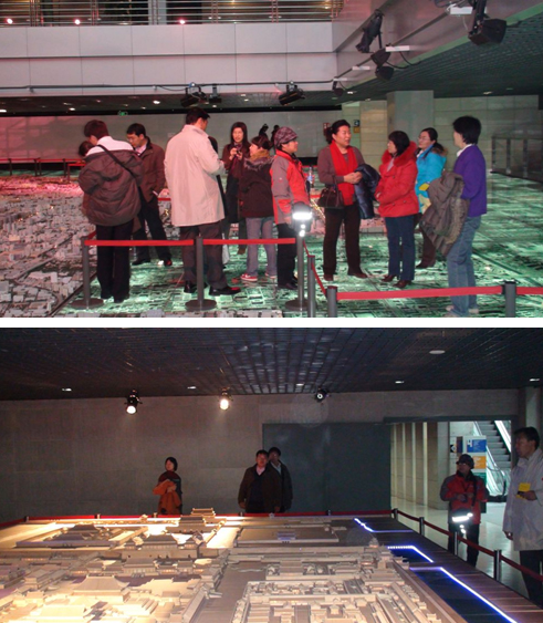 参观中,最吸引人的是展馆三层东区的北京城市规划模型。这一模型按1:750的比例建成,面积为302平方米,周边是1000多平方米同比例正摄影图像模型。大家在模型上找到气科院办公楼所在的位置,仔细地端详自己居住、生活和工作的地方,深刻感受到改革开放30年来北京城市建设的巨大成就,为祖国的繁荣发展感到由衷的高兴。