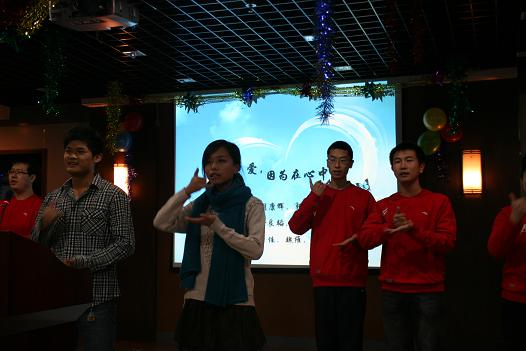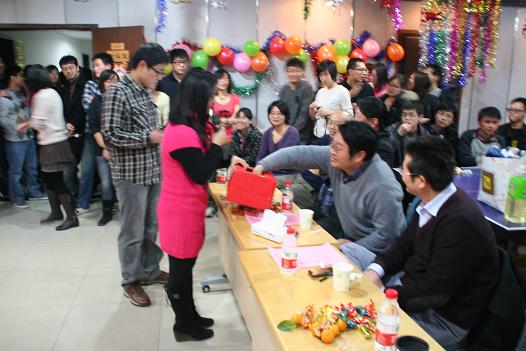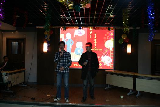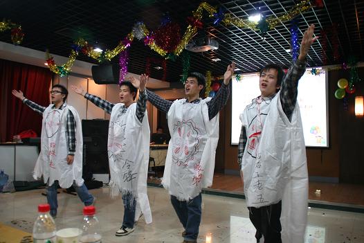 联欢会在四位08级硕士研究生动感的爵士舞中开始。联欢会上,研究生们摩拳擦掌,纷纷拿出精心准备的节目。相声、小品、器乐合奏、舞蹈串烧、以及精彩的游戏一次又一次地将联欢会的气氛推向高潮。联欢会在班级大合唱《爱,因为在心中》的歌声中圆满结束。