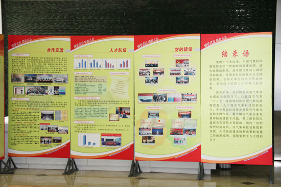 在中国气象局党组的正确领导下,党的十七大以来气科院在发展中取得了辉煌成就。为了展示党的十七大以来我院的工作成绩,展现深入开展创先争优活动推动我院科学发展取得的成果,我院于近期举办“科学发展、辉煌五年”――党的十七大以来成果展,总结回顾十七大以来在科技创新体系建设、人才队伍建设和党的建设等方面取得的成就,振奋精神,再接再厉,努力为气象事业科学发展做出新的贡献。