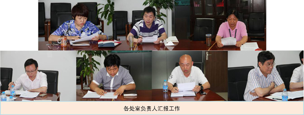 会上,办公室、科技处、人事处、计财处、党办、离退休办和研究生部主要领导分别汇报了各单位分解任务的进展情况,介绍了对下半年工作的思考。科技处、人事处和计财处主要领导还汇报了开展重点事项年度廉政风险防控工作的情况。会前各部门提交了简要书面汇报材料。
