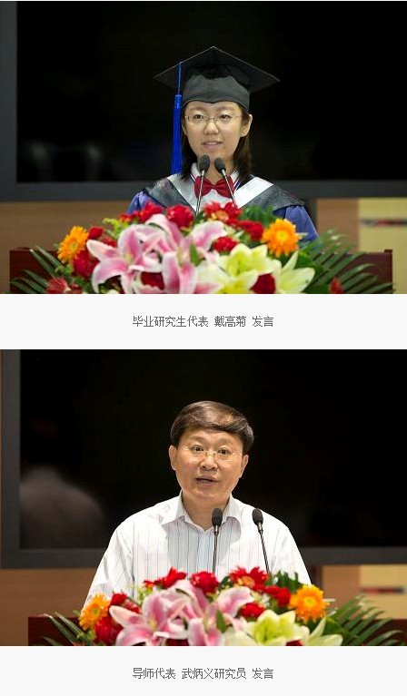 中国气象科学研究院院长端义宏亲切勉励广大毕业生,在走上社会后,不要抛弃求学的愿望,要树立终身学习的意识,活到老,学到老;不要抛弃对理想人生的追求,要做好付出和经受磨炼的准备。要时时刻刻记住值得研究的问题,要有干成事业的信心和克服困难的勇气,要学会坚持。毕业生代表戴高菊和导师代表武炳义也做了热情洋溢的发言。