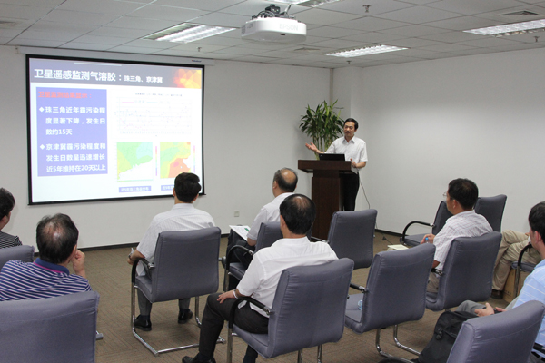 杨卫院士参观了实验室主要分析和检测现场,饶有兴致的同大气成分研究所的科研人员就雾霾机理和监测方法等问题进行了咨询和探讨。由端义宏院长向来宾做了关于大气成分观测及环境气象数值预报模式研究进展的报告。在报告中介绍了近年来大气成分研究成果,包括雾霾数值预报系统、沙尘暴数值预报系统、温室气体、酸雨监测、我国和全球气溶胶理化特征以及根据气溶胶机理研究进行的业务应用。赵平副院长向来宾介绍了青藏高原实验有关情况。