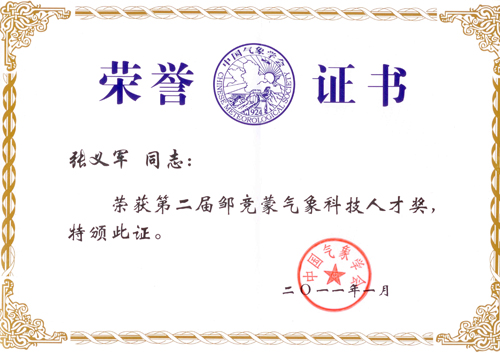 “邹竞蒙气象科技人才奖”是为纪念邹竞蒙先生为中国气象事业所做的杰出贡献,经国家科技部批准,由中国气象学会于2008年设立,每两年评选一次;主要奖励在中国境内从事气象科研、业务、管理以及气象科技创新、教育培训、科普、宣传等工作中做出突出贡献的优秀气象科技工作者。本次评选共有6人获得该奖项。