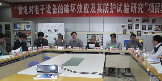 2012年12月20日,中国气象局科技与气候变化司在北京组织召开了公益性行业(气象)科研专项项目“雷电对电子设备的破坏效应及其防护试验研究(GYHY200706022)”验收会,验收会中国气象局科技与气候变化司科技项目处张跃堂处长主持。会议邀请了来自南京信息工程大学、铁道科学研究院,中国气象局综合观测司,国家气象中心,中国气象局气象探测中心,以及省局业务部门的多位专家作为验收组成员,项目验收专家组由周秀骥院士担任组长。验收专家组在听取了项目组所作汇报后,认为项目发展完善了人工引发雷电技术,提高了人工引发雷电成功率,实现了雷电流的高精度直接可靠测量;同时项目通过雷电光电磁自动综合观测系统的建立,实现了近距离闪电电场和磁场大动态范围的测量技术,通过雷电防护测试平台的建立,实现了雷电感应电压和感应电流的可靠测量,并试验检验了雷电防护器件的有效性。