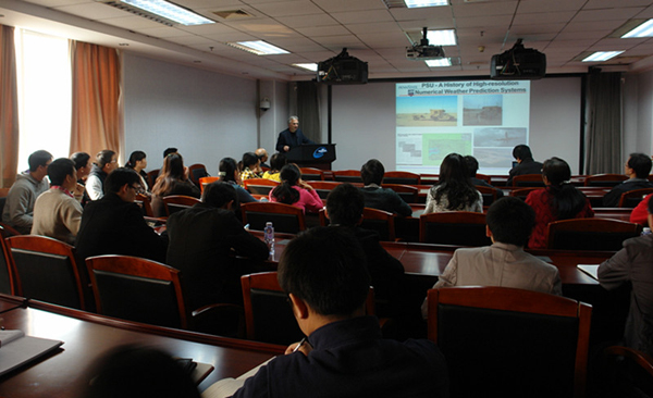 2013年10月22日上午,应中国气象科学研究院灾害天气国家重点实验室邀请,美国宾州州立大学David Stauffer教授来到实验室进行学术交流,并作了题目为“High-Resolution Numerical Weather Prediction for the Stable Boundary Layer”的学术报告。报告会由气科院副院长、实验室主任赵平研究员主持,灾害天气国家重点实验室科研人员、学生以及气象业务单位相关人员参加了报告会。