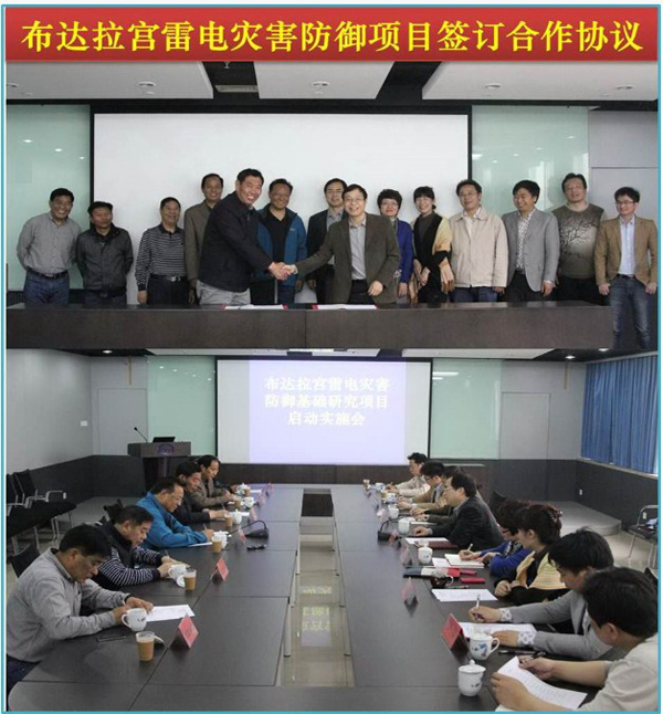 2014年4月11日,“布达拉宫雷电灾害防御基础研究项目”启动实施会议在气科院901会议室召开。王怀刚副院长主持会议,西藏气象局边巴扎西副局长、西藏文物局等单位领导和专家参加会议。项目负责人张义军研究员及协作单位负责人参加了会议。丁长征处长代表西藏文物局与气科院张义军研究员签订了项目任务合同书。