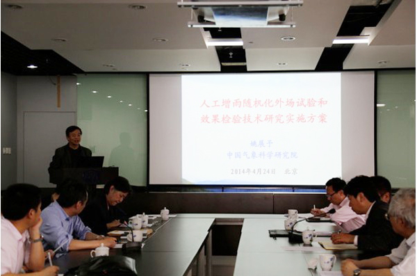 2014年4月24日人影中心在京组织召开2014年度公益性行业(气象)科研专项“人工增雨随机化外场试验和效果检验技术研究”项目启动会。会议由人影中心副主任郭学良研究员主持,减灾司王晓辉副巡视员、孟旭处长,气科院科技处于飞副处长、计财处谢仁强副处长,有关同行专家,项目及各专题负责人和主要骨干等近30人参加会议。该项目是我国继1975年福建古田水库流域开展的人工增雨随机试验后,首次计划在四个省(山东、福建、海南、吉林)开展的大型人工增雨随机化外场试验。