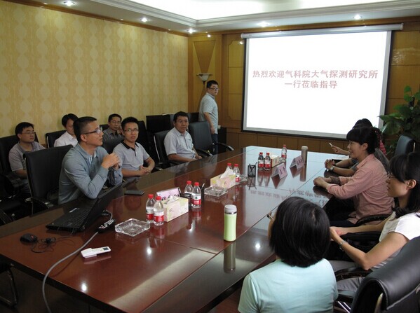 在安徽合肥组织“第二期全国雷电临近预警系统业务推广培训班”期间,受安徽省防雷中心主邀请,大气探测研究所一行9人到达安徽省防雷中心开展学术交流活动。活动期间,安徽省防雷中心程向阳主任首先对省防雷中心的人员队伍、配套设施、在研项目、已有成果等情况进行了介绍。大气探测所吕伟涛副所长对我所科研和业务开展的主要情况进行了介绍。