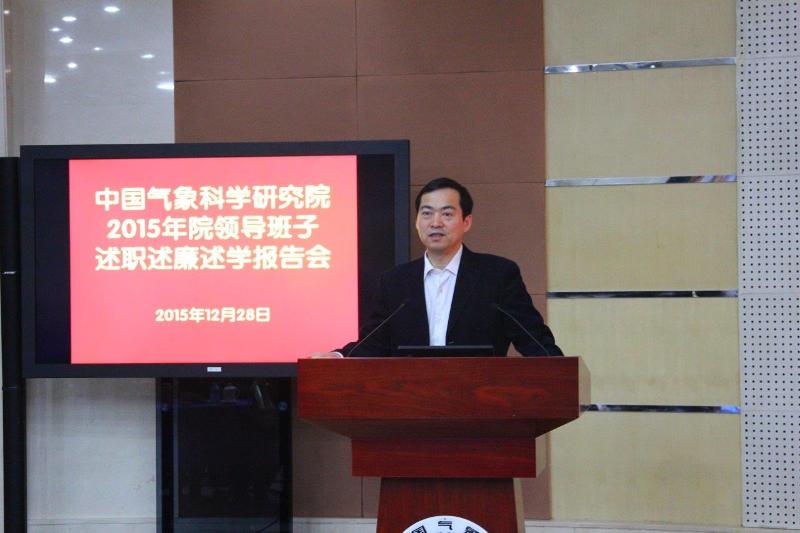 2015年12月28日,气科院召开2015年度院领导班子述职述廉述学报告会。会议由端义宏院长主持。
