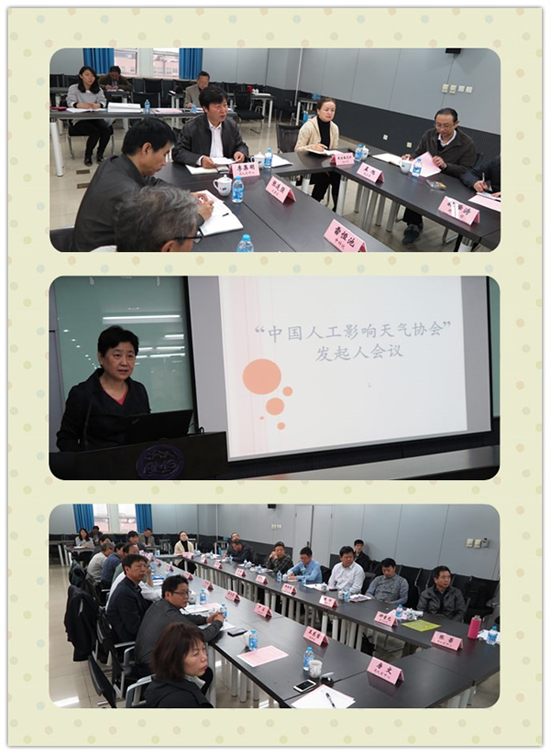2015年3月31日,筹备成立“中国人工影响天气协会”发起人会议在北京召开。会议由中国气象局人工影响天气中心主任李集明主持,中国气象局有关职能司领导、拟任会长和副会长单位代表(14人)及协会筹备组成员共计24人出席会议。