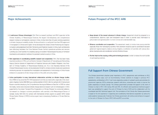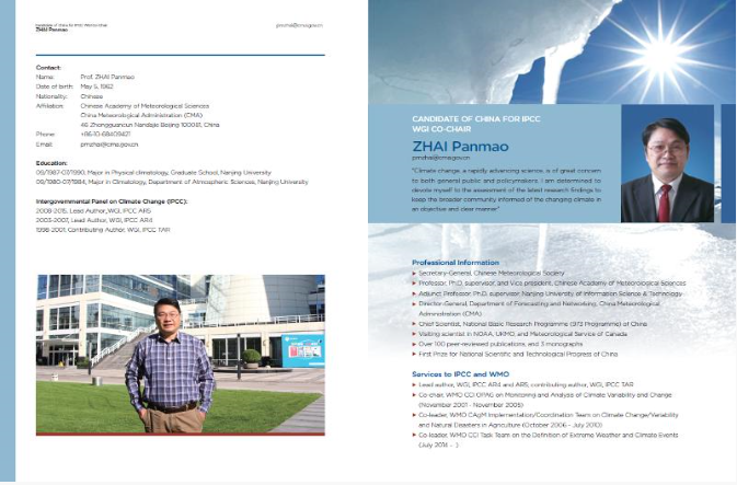 本次会议上,中国气象科学研究院研究员翟盘茂高票当选IPCC第一工作组联合主席。另一位当选的第一工作组联合主席是法国气候与环境科学实验室瓦莱丽•马森•贝尔莫特(Valérie Masson-Belmotte)女士。