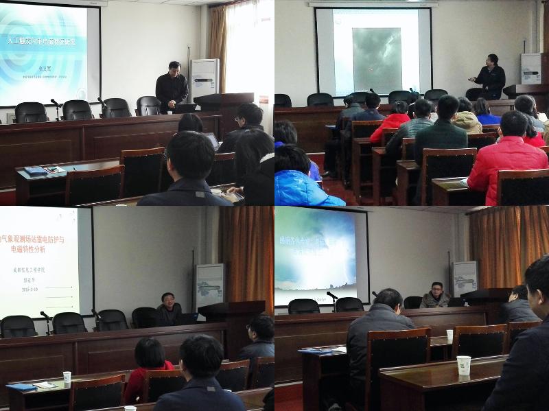 在本次学术交流会中,中国气象科学研究院张义军研究员首先就《广州野外人工引雷综合观测试验》作了深入和系统的报告,大气探测所吕伟涛研究员进一步介绍了《广州高建筑物雷电观测试验》,两个报告使成都信息工程学院的师生对大气探测研究所在雷电领域的主要研究工作有了进一步了解。成都信息工程学院电子工程学院郭在华副教授和刘昆副教授分别从《自动气象站的防雷系统分析》和《不同土壤环境条件下建立土壤电离动态模型的方法研究》等方面作了精彩的报告。