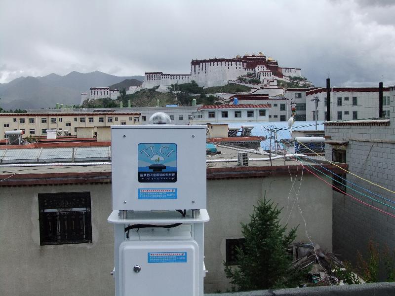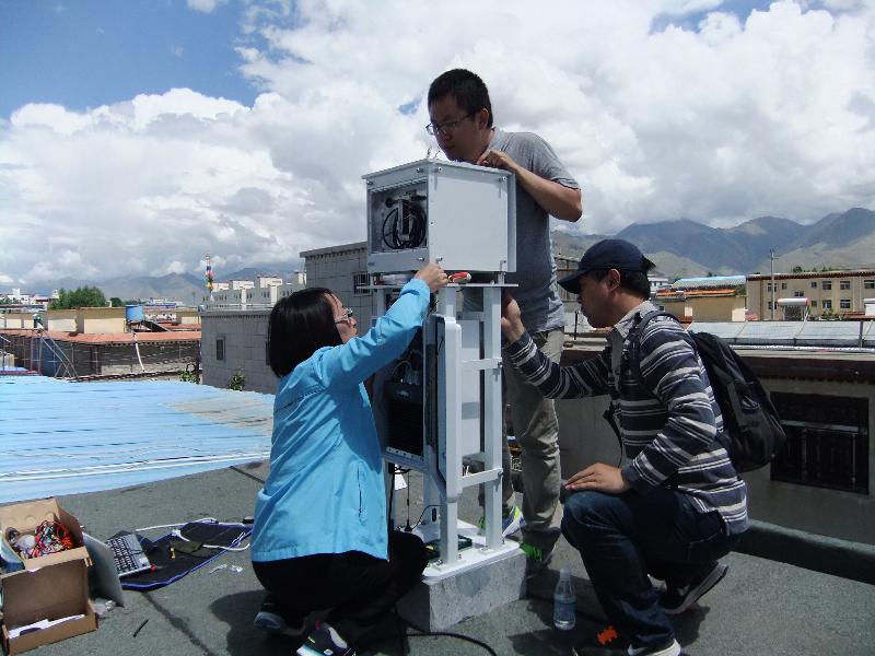 2015年6月22日至6月27日,“布达拉宫雷电灾害防御基础研究”项目按照研究计划在西藏自治区拉萨市开展了第二批观测设备的架设工作。大气探测所一行3人在西藏自治区防雷中心的大力协助下,顺利完成了新观测站的设备架设和调试工作。新增的雷电观测副站位于布达拉宫以北一户民居的楼顶。该处观测点视野宽广,与布达拉宫的距离适中,可以较好地对发生在布达拉宫方向的雷电活动进行观测。