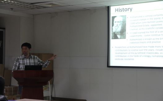 应生态环境与农业气象研究所邀请,10月26日下午2:30,英国洛桑实验室高级研究员吴连海博士来所进行了学术交流。这次学术会议由谭凯炎副研究员主持,全体科研人员和研究生参加。