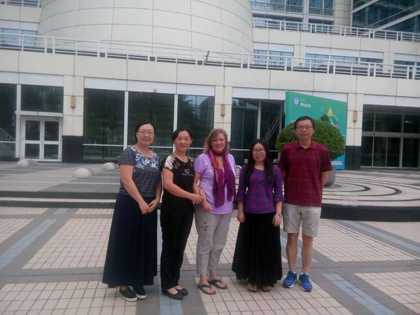 2016年7月14日,美国农业部农业研究中心水文与遥感实验室Martha Anderson, Feng Gao, Yun Yang和Yang Yang一行4人访问农气所并进行学术交流。Martha一行4人首先在农气所王培娟副所长和固城站谭凯炎站长的陪同下,参观了固城实验基地,了解了固城站的概况、试验设施、仪器配备、试验情况等,他们对固城站现有的试验条件表现出浓厚的兴趣,对固城站的人工水分控制试验场和根剖面系统感到震惊。