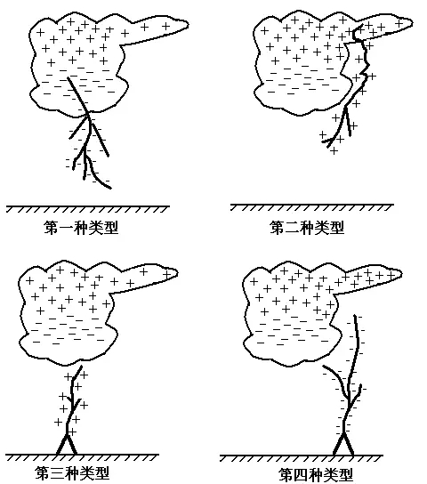 四种不同类型的地闪示意图(引自王道洪等,《雷电与人工引雷》)