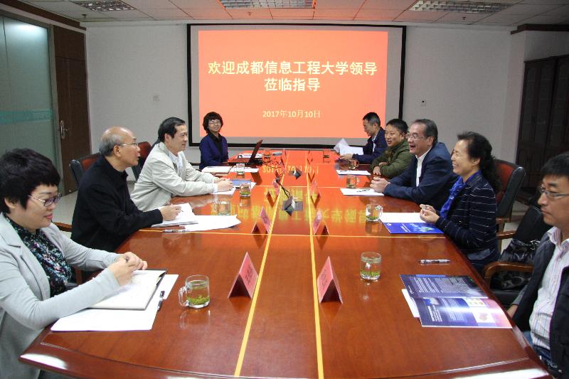 2017年10月10日,成都信息工程大学校长余敏明一行5人到气科院调研。端义宏院长主持接待。赵平副院长参与座谈。办公室、科技处、研究生部陪同调研。