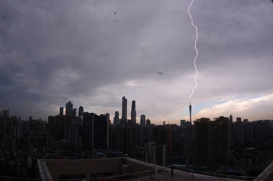 图2. 2018年5月27日一次击中广州塔的雷电照片