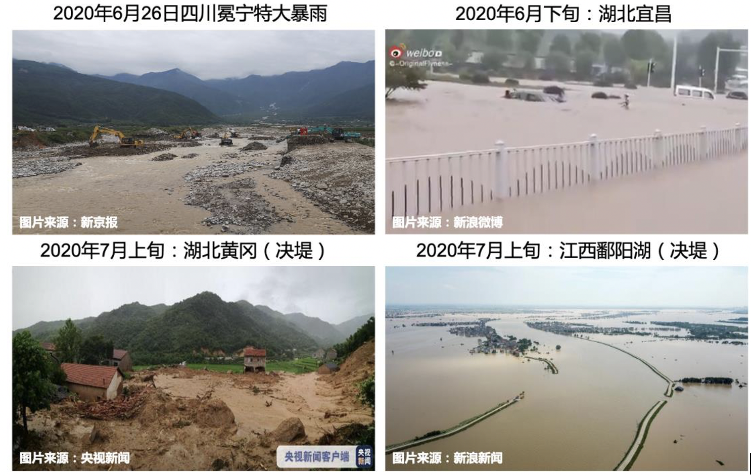 2020年夏季江淮流域持续性“暴力梅”事件影响(图片来自各网络媒体报道)