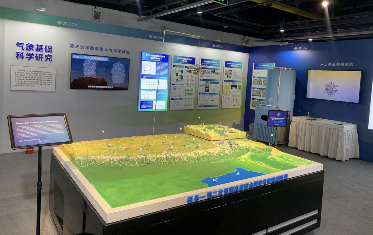 中国气象科学研究院、南京气象科技创新研究院作为科技创新主力军参与此次展览,展区设立在“国家馆”板块,主要以展板讲解、沙盘及实验展示、视频宣传的方式多角度集中展示了我院气象科技创新成果。
