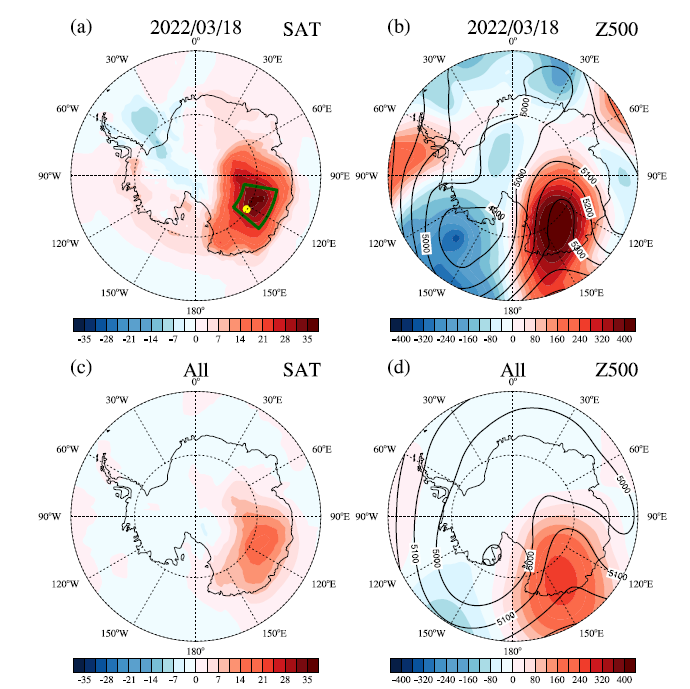 南极一直以来被视为全球气候的“稳定器”。但近年来,南极频发的极端天气意味着南极或已迈入急剧变化的阶段,需要引起国际社会的重视与警惕。2022年3月15-18日,南极冰穹C地区气温在4天内增幅超40℃,引起全球关注,本研究聚焦这一爆发性增温事件(以下称3.18爆发性增温),分析了事件的基本特征,揭示了其形成的原因。