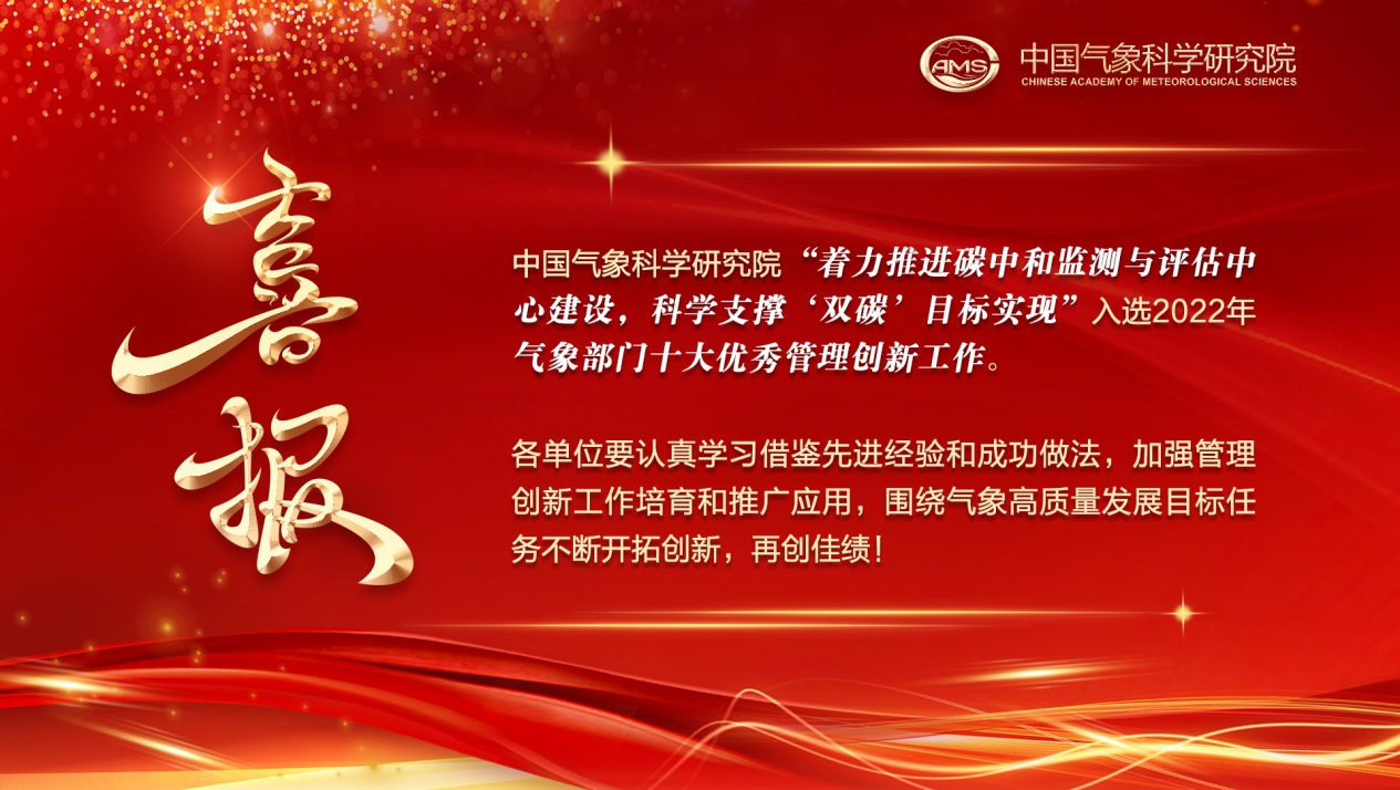 > 中国气象科学研究院“着力推进碳中和监测与评估中心建设,科学支撑‘双碳’目标实现”入选2022年气象部门十大优秀管理创新工作