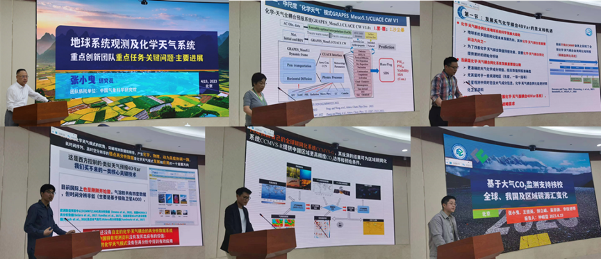 团队负责人张小曳院士做了关于“地球系统观测与化学天气”团队:研究目标、关键问题及主要进展的报告;团队骨干成员王宏、刘永柱、姜立鹏、郭立峰、仲俊霆等围绕核心研究任务分别做代表性成果进展报告。该团队有6家包括科研业务单位、省气科所、国家野外台站的15位成员组成。