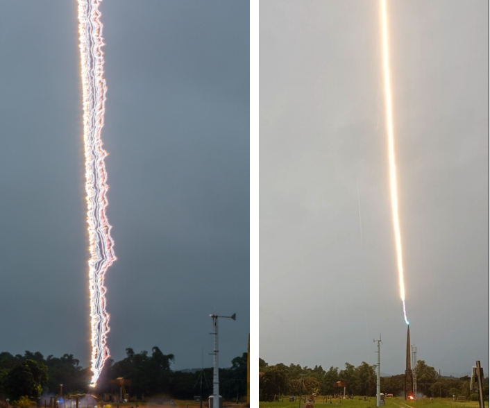 地基平台人工触发闪电(左)以及雷击风机叶片(右)照片