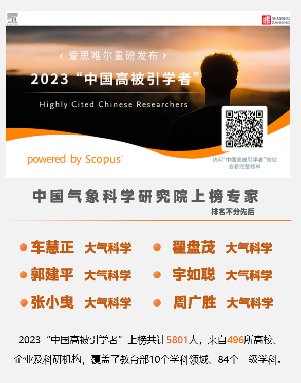 本次榜单中大气科学学科共有33人上榜,中国气象科学研究院共有6位专家入选。