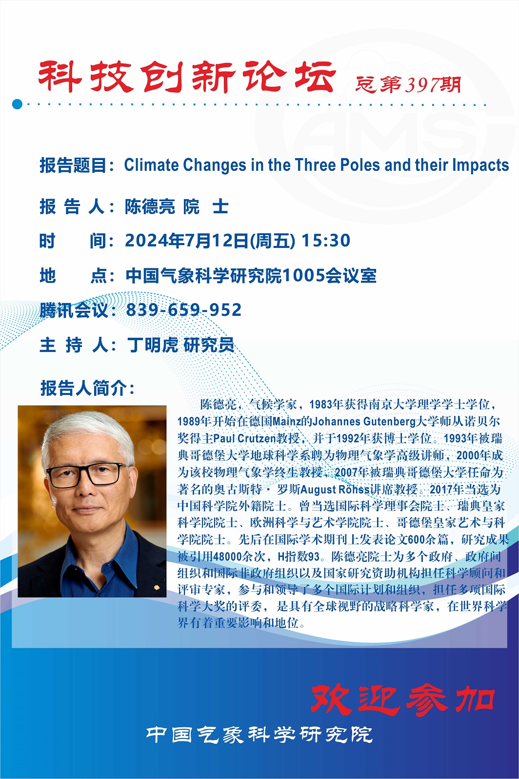 > 【科技创新论坛第397期】-Climate Changes in the Three Poles and their Impacts(陈德亮)