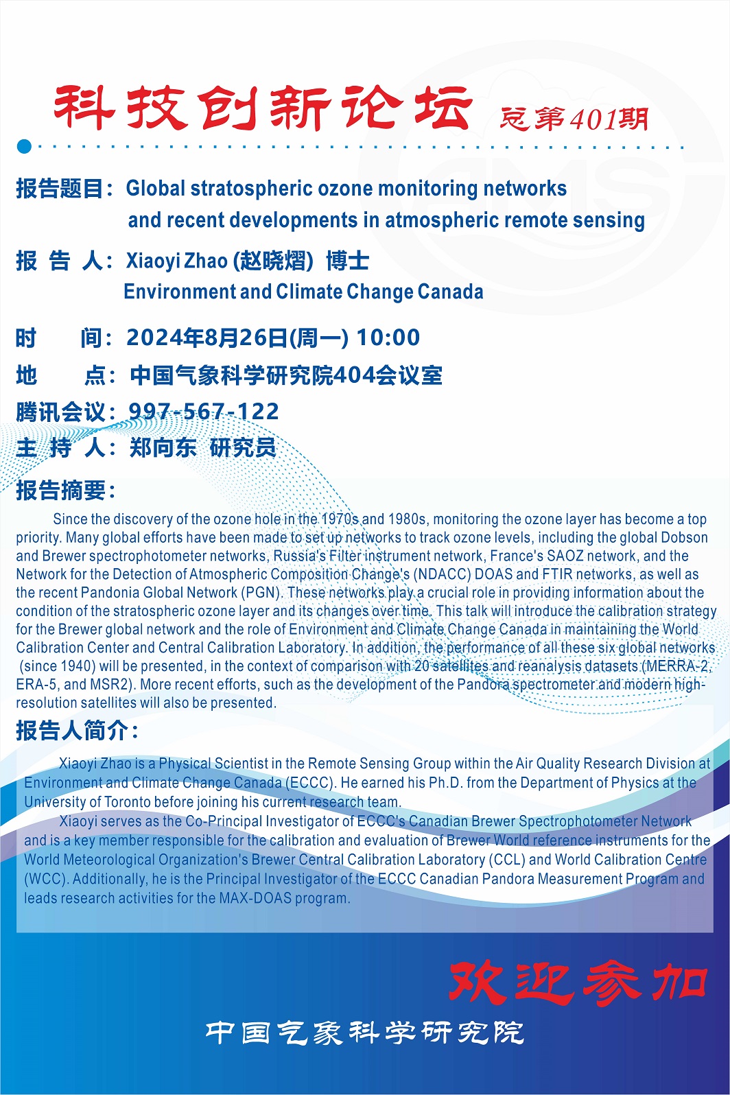 > 【科技创新论坛第401期】- Global stratospheric ozone monitoring networks and recentdevelopments in atmospheric remote sensing (Xiaoyi Zhao)