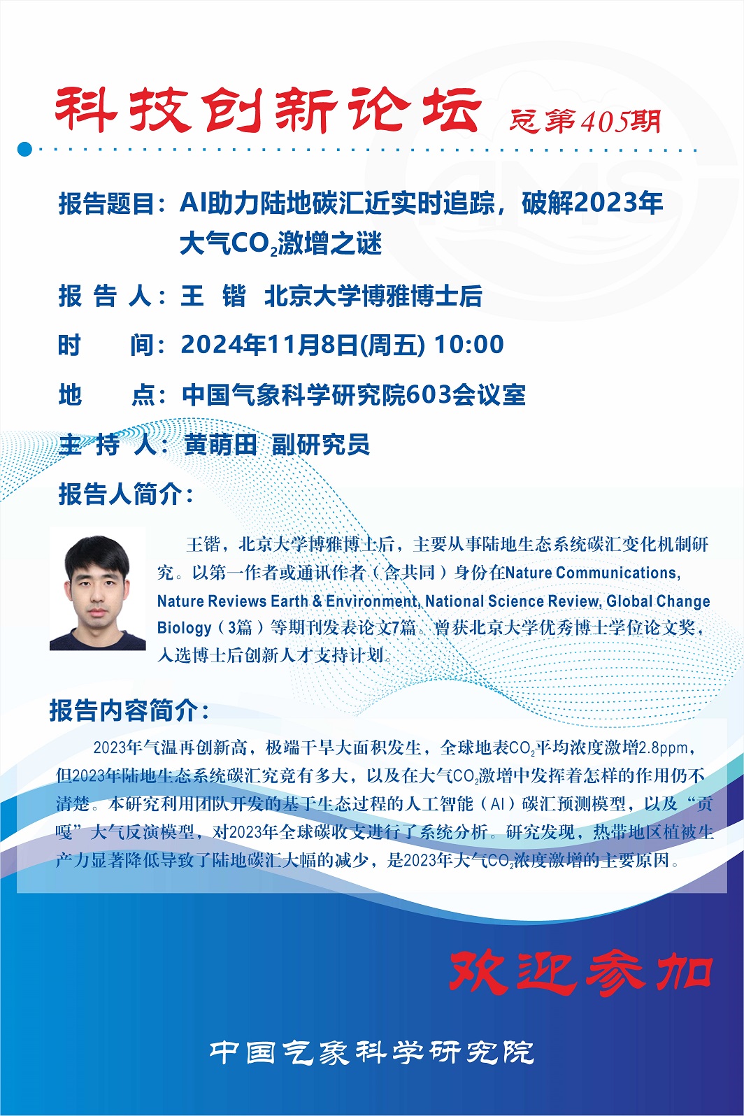 > 【科技创新论坛第405期】-AI助力陆地碳汇近实时追踪,破解2023年大气CO2激增之谜(王锴)