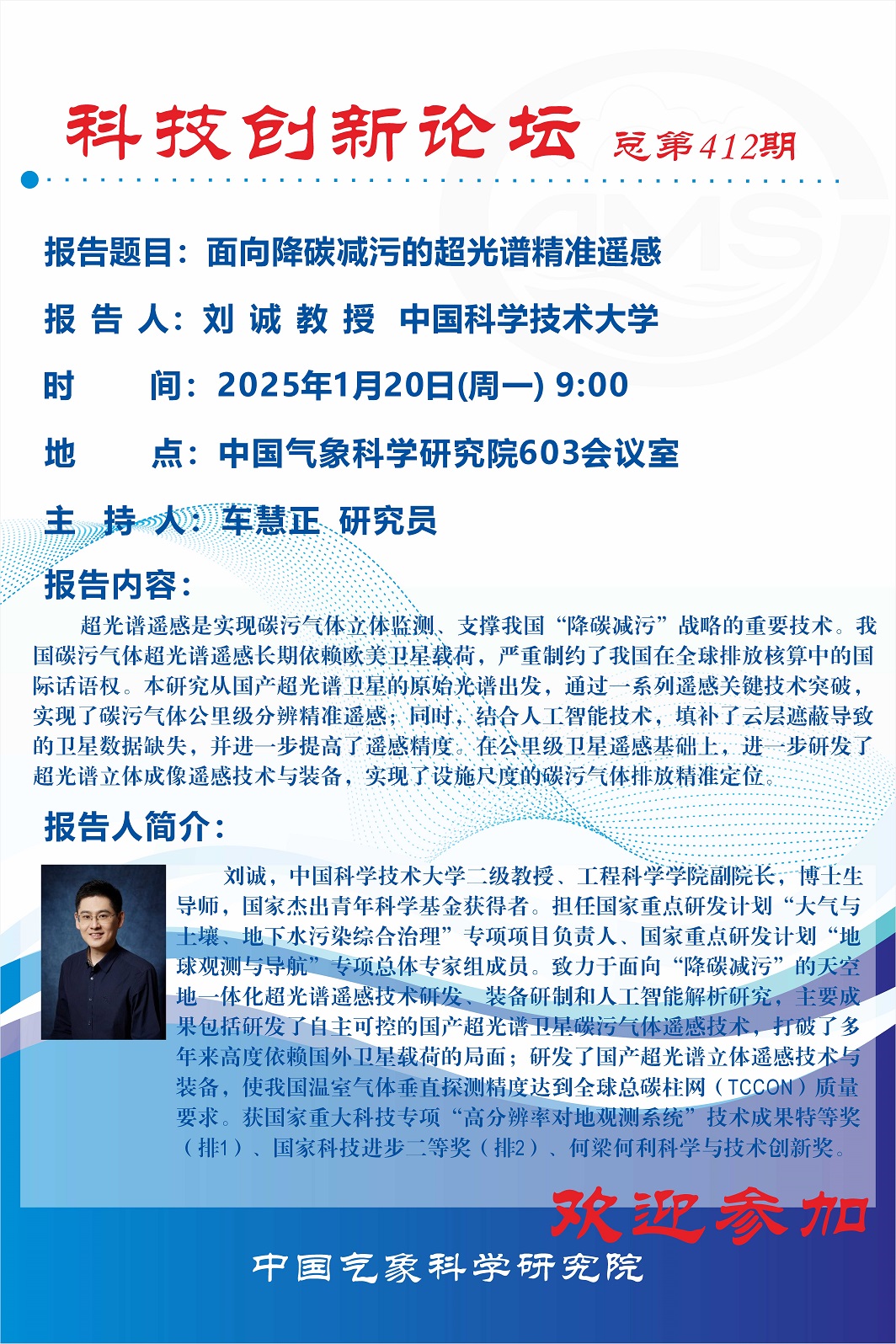 > 【科技创新论坛第412期】-面向降碳减污的超光谱精准遥感(刘诚)