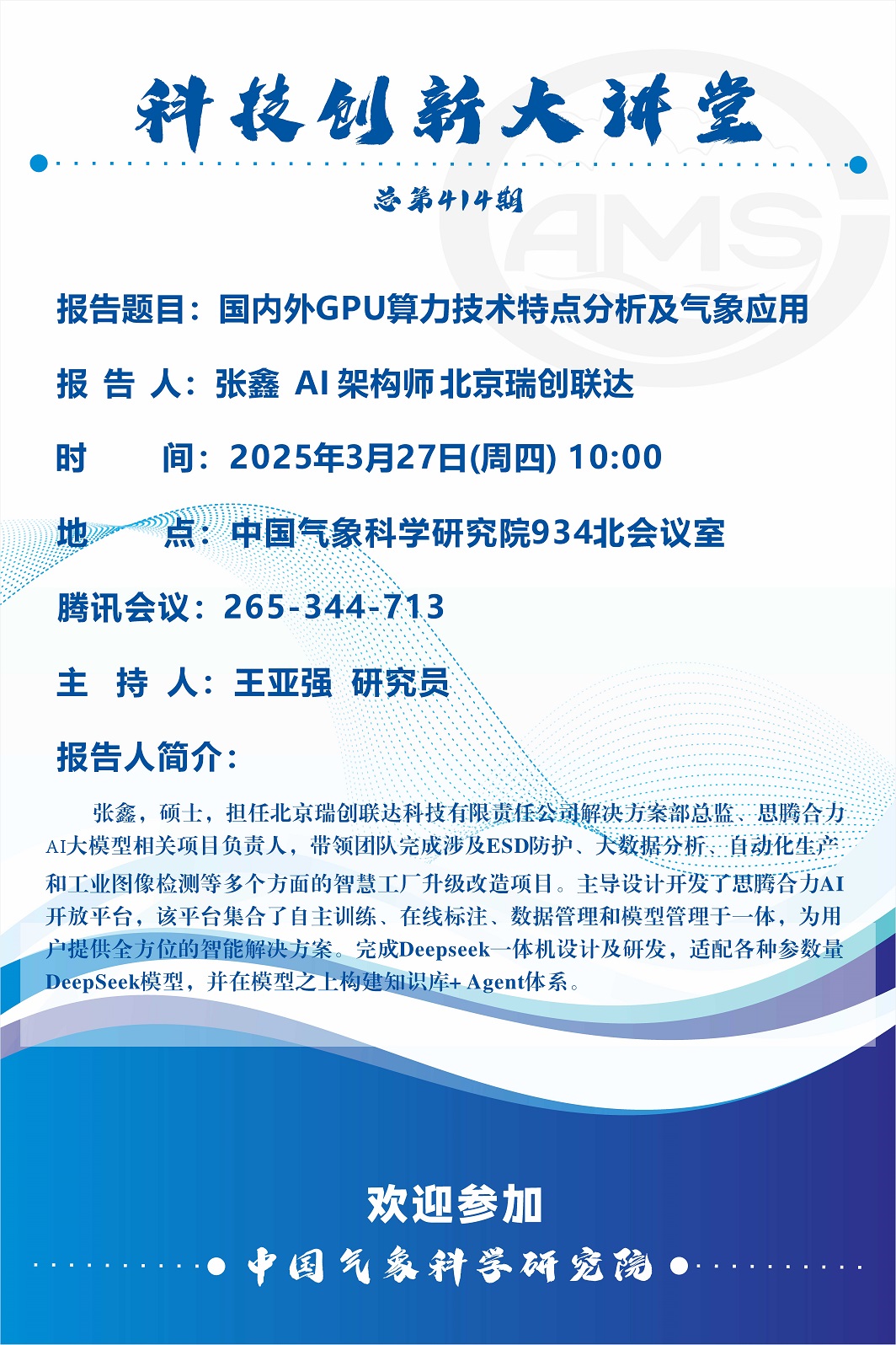 > 【科技创新大讲堂第414期】-国内外GPU算力技术特点分析及气象应用(张鑫)