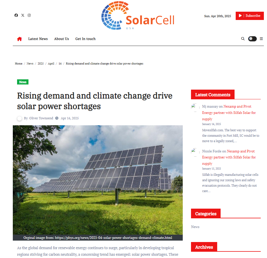 (https://eos.org/research-spotlights/solar-power-shortages-are-on-the-rise) (https://usasolarcell.com/news/2025/04/16/rising-demand-and-climate-change-drive-solar-power-shortages/)