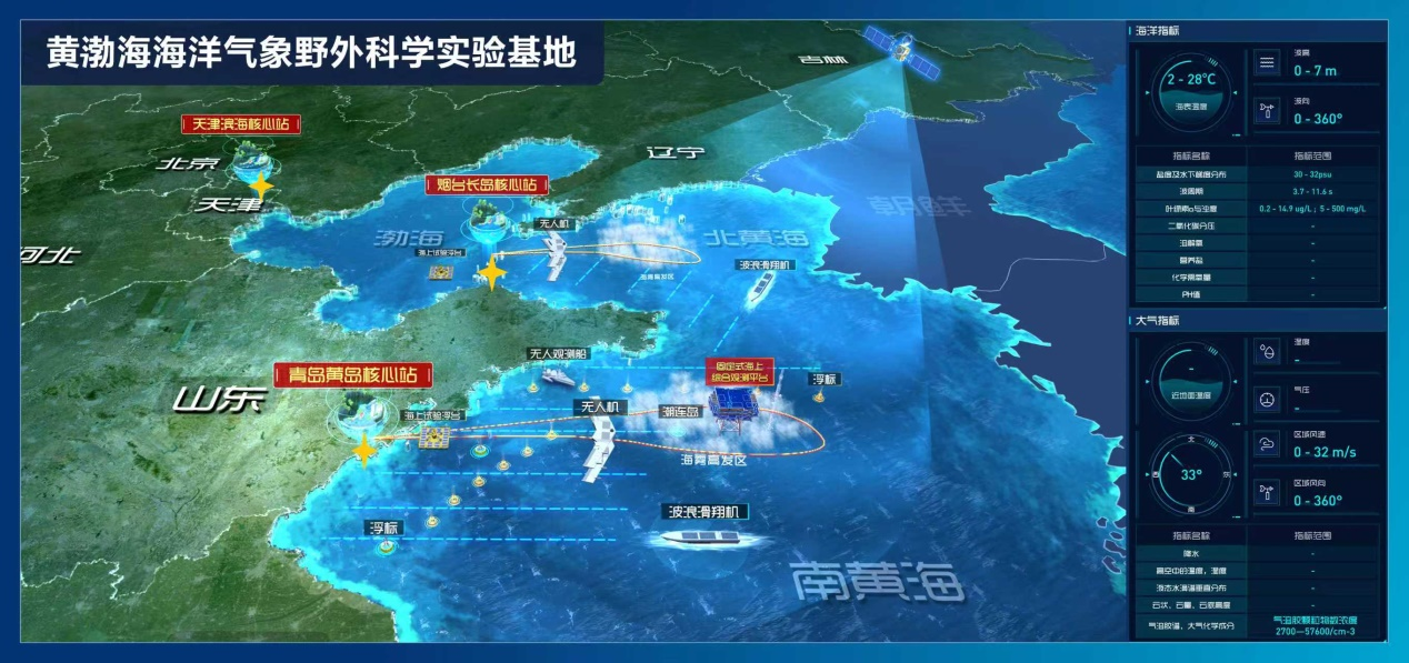 中国气象局黄渤海海洋气象野外科学试验基地以青岛黄岛、烟台长岛和天津滨海三个岸基观测站、一个固定式海上综合观测平台为核心,构建科学目标明确、布局合理、功能完备的海洋气象岸-海-空-天一体化协同观测体系。基地围绕我国北方中纬度海洋气象科技发展和业务保障服务的需求,开展海洋气象新型装备应用测试,海洋气象灾害观测试验、科学研究、监测预报和海洋气象服务核心技术攻关,为落实海洋强国战略和防灾减灾等重大部署提供科技支撑,为黄渤海沿岸海洋强省(市)建设和海洋经济发展作出气象贡献。