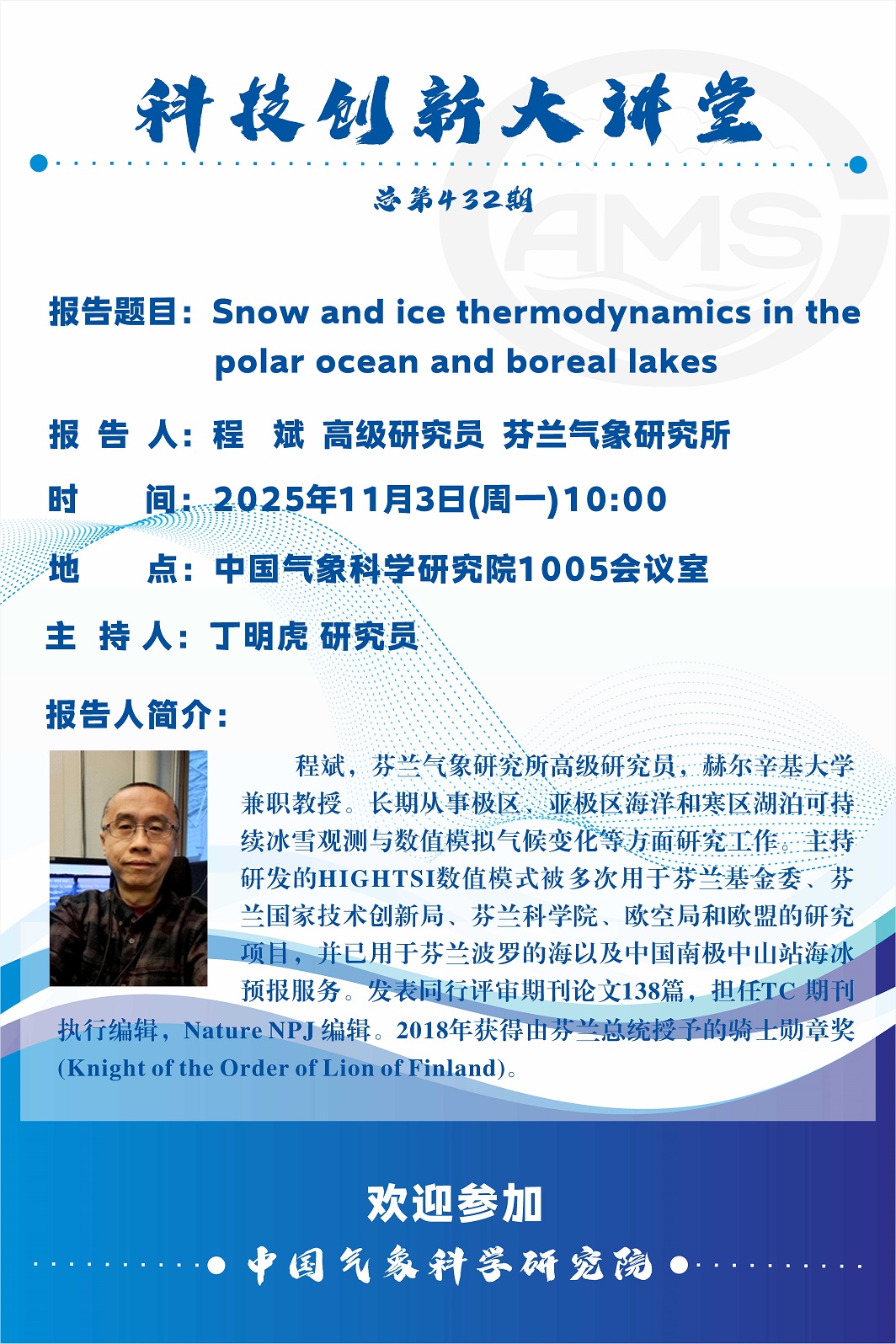 > 【科技创新大讲堂第432期】-Snow and ice thermodynamics in the polar ocean and boreal lakes(程斌)