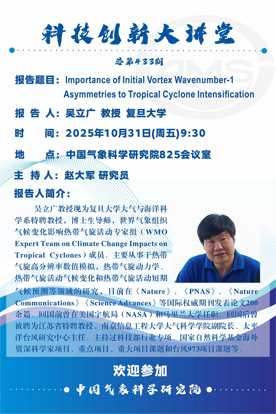 > 【科技创新大讲堂第433期】-Importance of Initial Vortex Wavenumber-1 Asymmetries to Tropical Cyclone Intensification(吴立广)