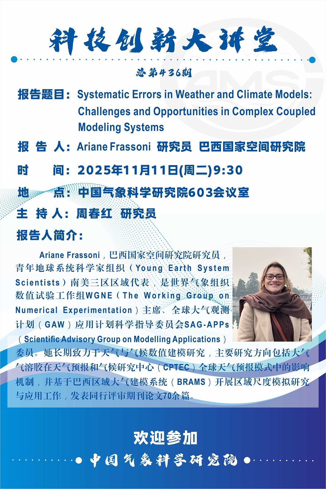 > 【科技创新大讲堂第436期】-Systematic Errors in Weather and Climate Models: Challenges and Opportunities in Complex Coupled Modeling Systems(Ariane Frassoni)